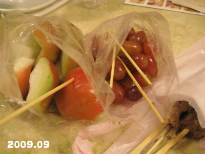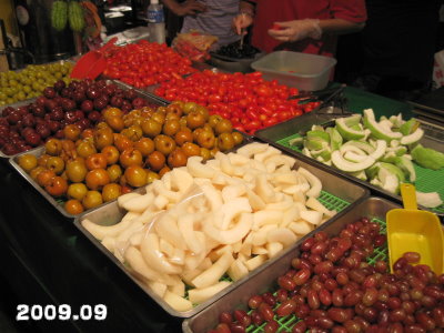 我們太早到,所以水果還沒擺全,買了蓮霧跟葡萄,一袋好像是$50(時間太久忘了)~