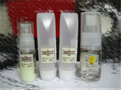 最右邊的是噴霧型的分裝瓶,拿來裝酒精,在外面吃飯桌子髒的時候可以噴噴。
